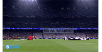 皇马球迷赛前在伯纳乌拉起横幅,反对种族歧视