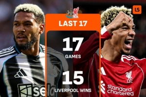 据媒体统计,利物浦近17次英超对阵纽卡保持不败,战绩15胜2平。