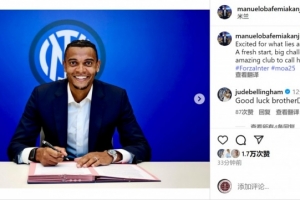 阿坎吉社媒晒出与国米签约的照片,配文:“对即将在国米迎来的新篇章感到兴奋。全新的开始,巨大的挑战,以及一个我可以称之为家的伟大俱乐部!”