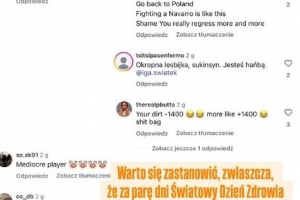 部分网民在社交媒体上写道:“你不配来中国,滚回波兰去。”、“你就是垃圾。”、“不靠兴奋剂你就是个平庸之辈。”、“恶心的女同性恋,杂种。你是耻辱。”