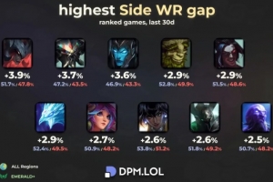 体育资讯10月4日讯 外网数据统计媒体DPM.LOL分享了红蓝方胜率差距最大英雄榜单,具体如下: