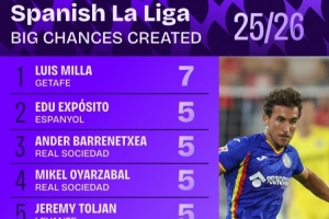 上一篇: 西甲参与进球次数排行:姆巴佩居首 维尼修斯第二、小蜘蛛第四