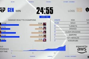 体育资讯10月23日讯 2025全球总决赛瑞士轮Round4,GEN首局用时24分55秒速通TES,距离本届S15最短对局仅差5秒。
