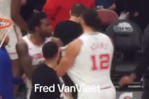 伊森昨日暂停疑似和海王冲突 两人互相拉拽 火箭队友一脸懵