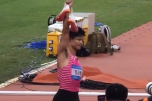 据博主“是周川呀”社媒消息,赛后苏炳添将跑鞋鞋带系起后高高举起,示意自己“挂靴”。