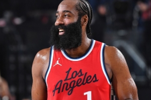 全场比赛,快船球星哈登出战35分钟,26中17,三分16中10得到55分3板7助攻1抢断。