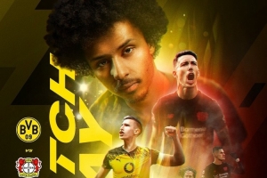 多特官方社媒发布了对阵勒沃库森的海报,施洛特贝克、阿德耶米、格里马尔多等球员出镜。
