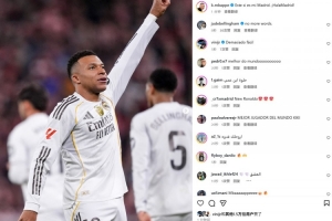 2射1传独造三球,姆巴佩社媒晒庆祝照片:这就是我的皇马,加油!