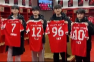 • T1分享动态:选手们在拜仁主场手持球衣合照