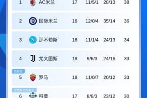 体育资讯01月04日讯 意甲第18轮,罗马客场0-1不敌亚特兰大,尤文1-1莱切升第4,最新积分榜如下: