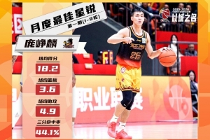 庞峥麟本月出战9场,场均出场30分钟,能够得到18.2分、3.6篮板、4.9助攻。作为外线球员,庞峥麟的投篮命中率达到52.3%,三分命中率44.1%。12月19日江苏肯帝亚主场对阵上海久事,庞峥麟在其CBA职业生涯第3场比赛便砍下32分,这也使他超越赵柏清的19场,成为最快得到单场30+的CBA选秀球员。