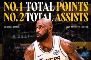 湖人官方晒海报:NBA历史得分王总助攻还第二多 勒布朗独一无二