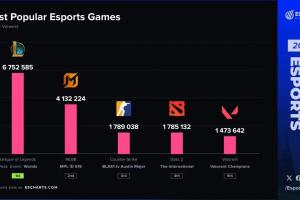外媒统计2025游戏观看峰值排行:LOL位居第一,无畏契约第五