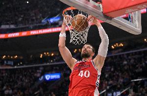全场比赛,祖巴茨出战32分钟,13投7,罚球4中4,砍下18分19篮板,其中10个进攻篮板,还有1个抢断进账,正负值+19。