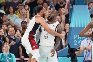 “不过,我昨晚也说了,那场比赛是我参加过的最伟大比赛之一。能够与你们共享这份经历很荣幸。最终也得到了童话书般的结局。我们一度可能在决赛碰上加拿大队,他们阵中有许多NBA球员,表现很出色,然后法国队淘汰了他们。我们就想到,我们在半决赛击败塞尔维亚队并在巴黎的决赛中与东道主球队争夺金牌的概率有多大?那是一个故事书般的结局,斯蒂芬(库里)在比赛末段让所有人晚安的表现很疯狂。”
