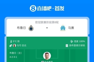 体育资讯1月29日讯 北京时间今天4点,欧冠联赛阶段第8轮,布鲁日主场对阵马赛,此役双方首发已经公布。