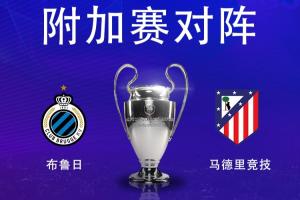 欧冠淘汰赛附加赛对阵:马竞vs布鲁日,马竞先客后主