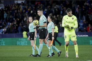 体育资讯2月1日讯 西甲第22轮比赛,莱万特在主场和马竞互交白卷。本场比赛,两名女性裁判出现在裁判团队中,两人均是担任助理裁判。