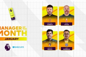 英超官方1月最佳主帅候选:罗塞尼尔、卡里克、戴奇、伊劳拉