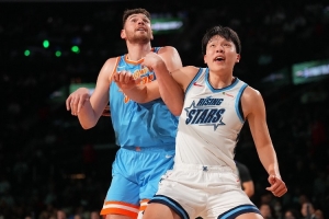 “比赛中最精彩的时刻可能是杨瀚森突破克林根上篮得分。赛后,杨瀚森开玩笑说这应该算作一次犯规。可以看出,杨瀚森在和克林根对位时表现得非常享受。我认为他希望展示自己的实力并赢得尊重,尤其是在今年受到一些批评的情况下,他在新秀赛中的出色表现让自己也非常开心。整个全明星周末期间,杨瀚森显得非常自在且充满活力,仿佛从禁锢的世界中走出来一般。作为一名新秀,特别是在有语言障碍的情况下他有时会显得拘谨,但看到他有机会展现自己的能力并乐在其中,还是非常令人高兴的。”Casey Holdahl表示。