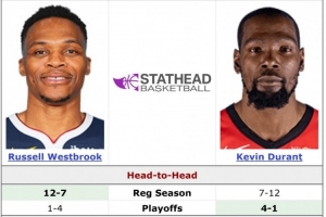 这将是杜兰特和威少生涯第20次在常规赛交锋,此前杜兰特7胜12负落下风,季后赛杜兰特4胜1负。
