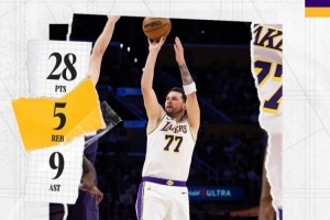 三节打卡!湖人官方发布东契奇25+5+9数据海报:轻量工作