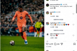 此役拉什福德为巴萨替补出场,赛后他在社交媒体上晒出比赛照片,配文:“首回合结束,下周决胜负。”