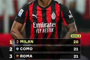 根据数据统计,米兰是本赛季五大联赛迄今为止丢球最少的球队,红黑军团仅丢了20球,位居其后的是科莫、罗马及朗斯的21球,阿森纳以22球位居第5。