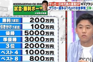 日本队上届世界杯奖金(每人,1日元=0.05元人民币)↓